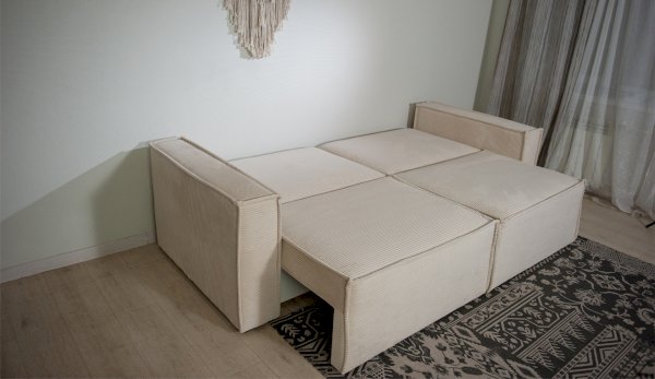 Брутальный диван с минималистическим дизайном и комфортной посадкой украсит современный интерьер, отлично подойдет для зонирования комнаты. Прямые линии силуэта подчеркиваются двойным декоративным кантом. Посадочное место образовано из двух частей, которые раскладываются независимо друг от друга и при необходимости прямую конфигурацию дивана можно менять на угловую. Инновационная система раскладки состоит из трех роликов на металлических направляющих, легко превращает диван в спальное место, исключает перекосы и деформацию короба. Металл в направляющих повышает их надежность и сопротивляемость нагрузкам. Независимый пружинный блок в основании дивана гарантирует комфортный отдых.