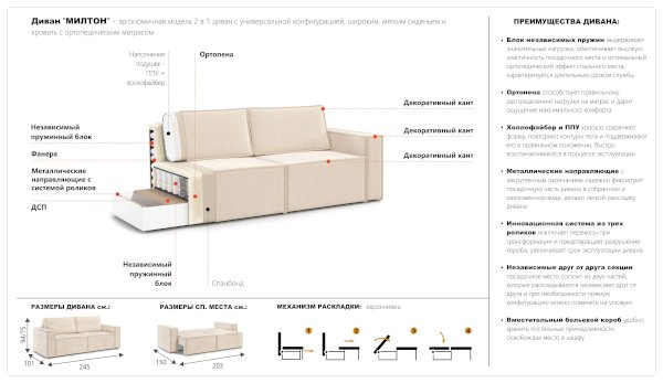 Диван Милтон (Империал) продается в интернет-магазине mebel-online-noyabrsk.ru по цене 60 770 руб. Есть доставка по Ноябрьску и Ямало-Ненецкому автономному округу. Возможность подъема на этаж и сборки уточняйте у менеджера по телефону 8(800)505-27-11.